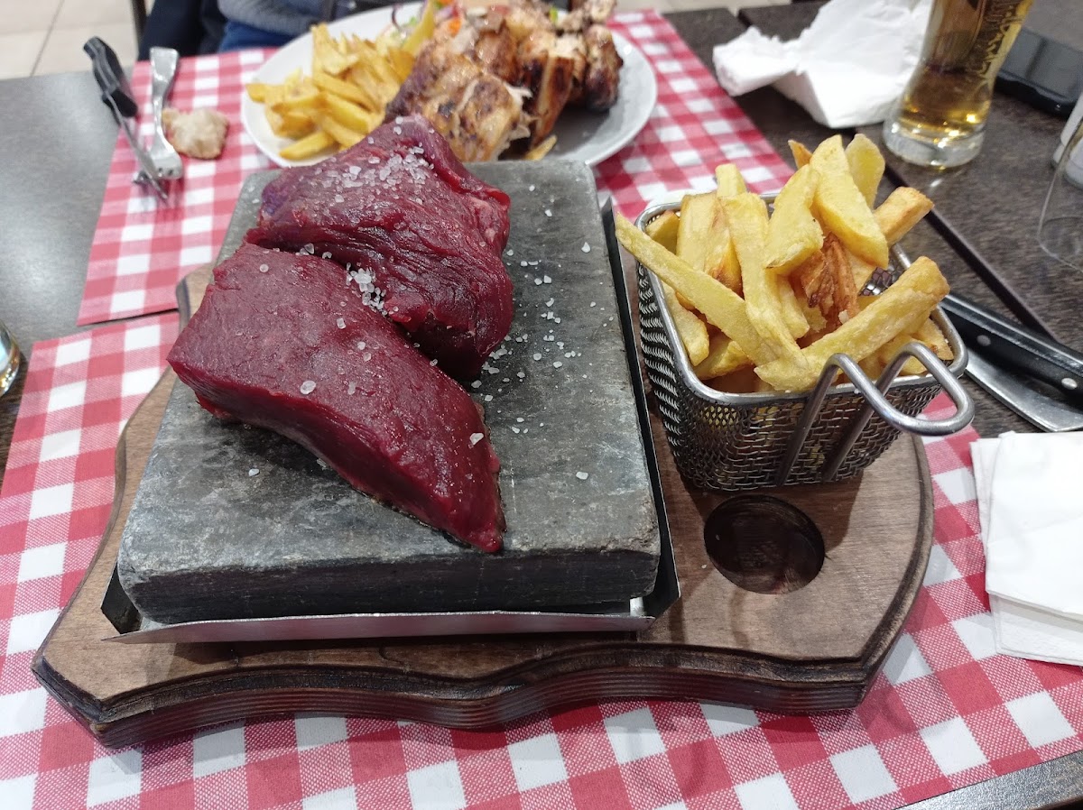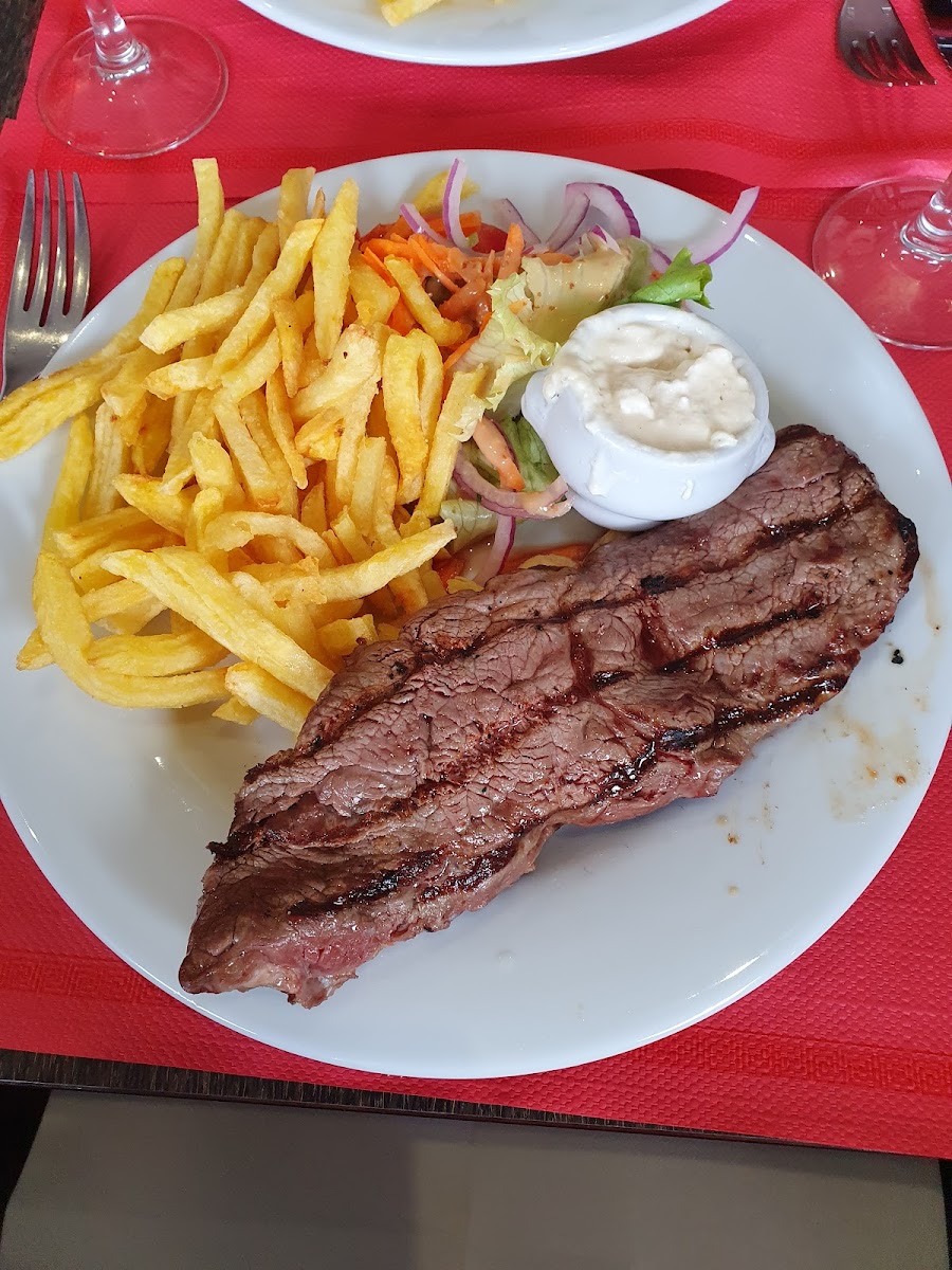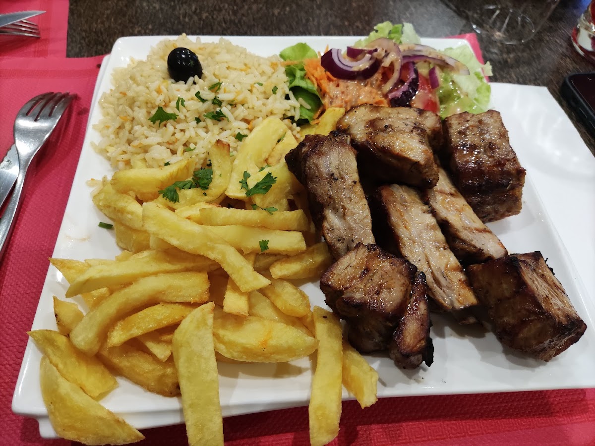 Plats copieux et savoureux la viande est très tendre et bien cuite légèrement trop salée à mon goût mais très bonne Frites maisons Plats traditionnels portugais Prix raisonnables